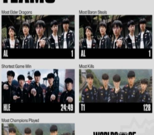体育资讯10月20日称 世界赛至今队伍数据如下:最多击杀远古巨龙:AL;最多偷取大龙:A...