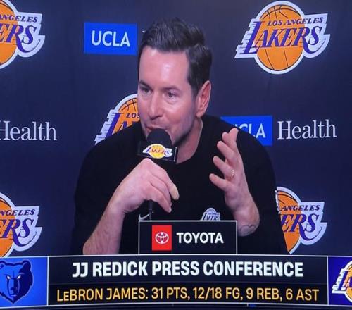 赛后,湖人队主帅JJ-雷迪克接受了媒体采访。在被问到让东契奇持球同时让詹姆斯打无球,同时里夫斯回归后的排兵布阵时,雷迪克说道:“现在的情况是,队里既有职业生涯一直坚持某种打法的球员,又有职业生涯一直坚持某种打法的球员。再加上AR(里夫斯),挑战就更大了。事实上,篮球只有一个。”