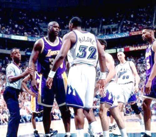 1 - 鲨鱼虽然强悍,但对面也有一个怪物,马龙在上场时间和奥尼尔一样的情况下拿下场均30.0分10.3篮板外加4.5助攻。这个4.5助攻就很有灵性,在马龙和奥尼尔极限一换一的情况下,胜负只能看队中其它得分点的表现。
